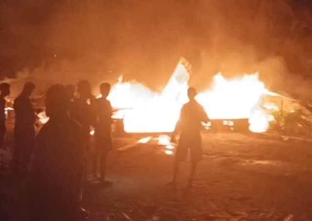 Bantan,Riauline.com – Malam yang semula tenang berubah mencekam bagi keluarga Bunasir, warga Jalan Terubuk Dusun Tuo Tengah, Desa Bantan Sari, Kecamatan Bantan, Kabupaten Bengkalis. Sekitar pukul 22.00 WIB, Selasa (30/9/2025), rumah sederhana yang selama ini mereka tempati mendadak dilalap si jago merah.
