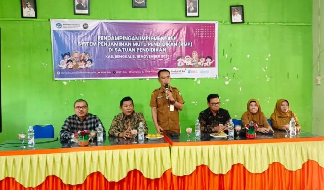 BENGKALIS,Riauline.com - Balai Penjaminan Mutu Pendidikan (BPMP) Provinsi Riau menggelar kegiatan Pendampingan Implementasi Sistem Penjaminan Mutu Pendidikan (PMP) bagi satuan pendidikan di Kabupaten Bengkalis. Agenda ini dipusatkan di Kecamatan Bukit Batu dan berlangsung pada Selasa (18/11/25) dengan melibatkan berbagai jenjang sekolah.